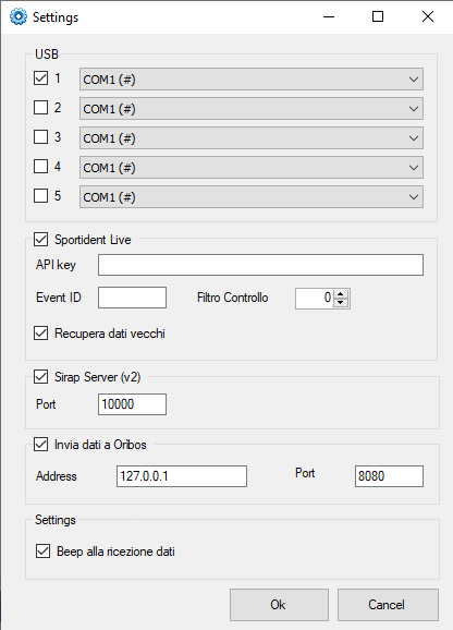 Configurazione SiConfig+ (http://www.sportident.com/) :